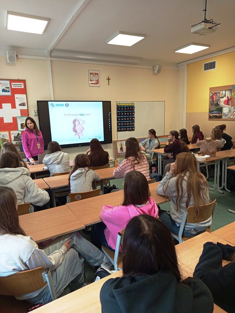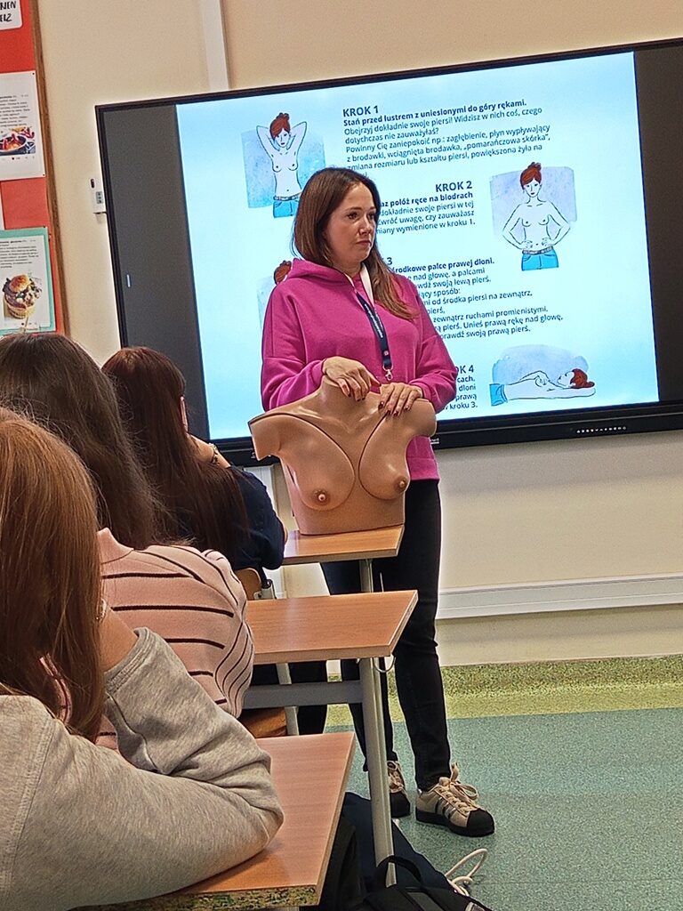 28 października w związku z obchodami Miesiąca Walki z Rakiem Piersi, w naszej szkole odbyły się warsztaty poświęcone profilaktyce tego schorzenia. Temat ten jest niezwykle istotny, ponieważ regularne badania, edukacja i wczesne wykrycie, mogą uratować życie. Dziękujemy serdecznie Pani Marceli Kulewskiej – Powiatowa Stacja Sanitarno-Epidemiologiczna w Policach, za cenne informacje, zaangażowanie i przeprowadzenie inspirujących zajęć, które zwiększą świadomość i pomogą dbać o zdrowie naszym uczennicom.
