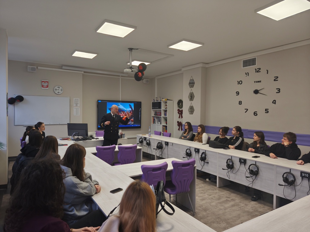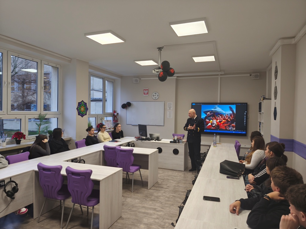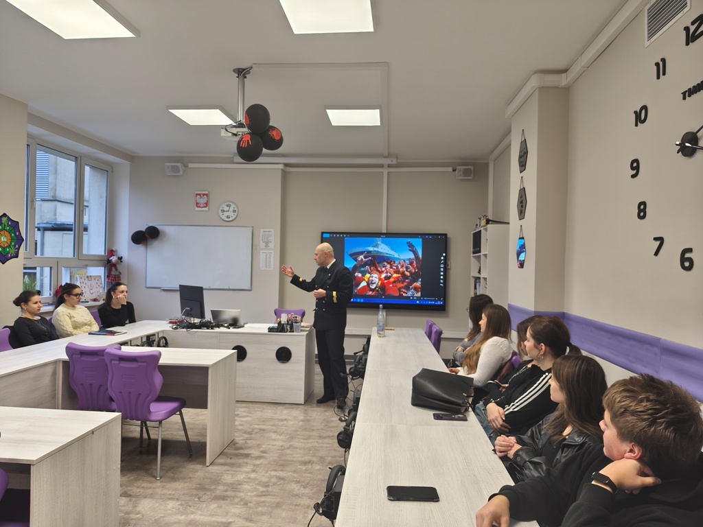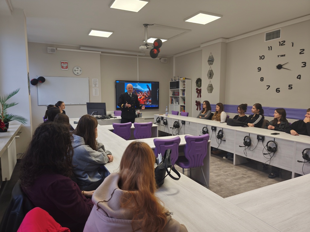Dzisiaj uczniowie z klasy 4 lm wraz z nauczycielkami mieli okazję uczestniczyć w spotkaniu z Akademią Morską. Prezentacja miała na celu wsparcie w świadomym wyborze dalszej ścieżki edukacyjnej i zawodowej. Maturzyści poznali ofertę uczelni, kierunki takie jak logistyka, nawigacja czy mechatronika oraz usłyszeli o kryteriach naboru.